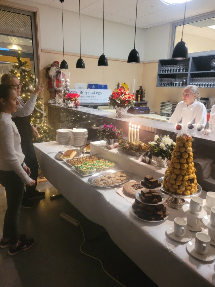 Vi er glade for å kunne samarbeide med Mat- og Restaurantlinjen 🧑🍳ved Borgund VGS, en samarbeidspartner av høyeste klasse. Her blir vi hjertelig mottatt av dyktige elever som ikke bare leverer førsteklasses service, men som også har en lidenskap for mat. Maten som serveres er fantastisk, og utvalget er variert: fra juletradisjoner til sesongens beste retter. Vi har middager i alle varianter, desserter i uendelige former og farger, samt et rikt tilbud av kaker og kaffe. Det er nesten så en ikke behøver spise på to dager! 🙃🎄